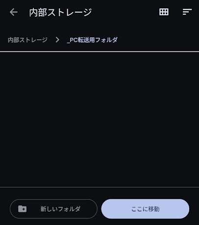 自分は内部ストレージ直下に「_PC転送用フォルダ」を作っている。